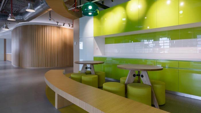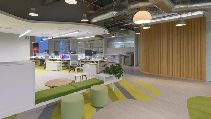 辦公區(qū)域的設(shè)計:設(shè)計師在設(shè)計中為了將勞逸結(jié)合變?yōu)楝F(xiàn)實,故此在設(shè)計的時候?qū)⑥k公、休息都加以具象,目的就是希望讓員工在這樣的空間之中,將勞逸結(jié)合轉(zhuǎn)入自己的工作之中,休息是為了更好的開始,這是設(shè)計師對于休息的感悟,也能充分展現(xiàn)企業(yè)對于員工的關(guān)愛。
