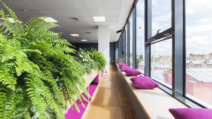 進(jìn)門區(qū)域的設(shè)計(jì):客戶進(jìn)入后看到的一處生機(jī)勃勃的空間,這也這是設(shè)計(jì)師特意為之,在設(shè)計(jì)師看來不管是什么,第一印象都十分重要,故此設(shè)計(jì)師希望通過生機(jī)勃勃的進(jìn)門區(qū)域,給客戶留下一個(gè)不錯(cuò)的第一印象,同時(shí)生機(jī)勃勃也在一定程度上展示企業(yè)蓬勃發(fā)展的前景。