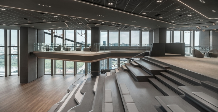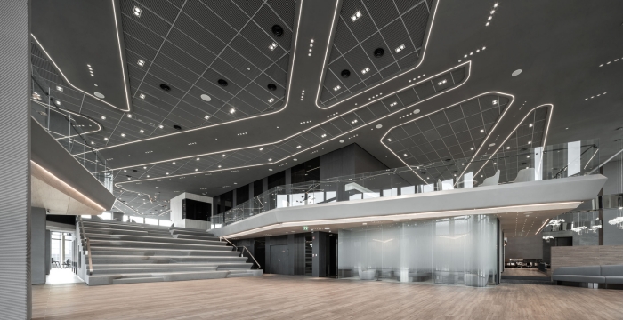 使用的材料是一個(gè)巨大的黑色未經(jīng)拋光的大理石,用高低浮雕技術(shù)雕刻,以創(chuàng)造尺寸、燈光和陰影效果,但反映了當(dāng)代的設(shè)計(jì)。從企業(yè)來(lái)說(shuō),公司在某種程度上是獨(dú)一無(wú)二的。因此,設(shè)計(jì)一直伴隨著溫暖,舒適,住宅的感覺(jué)。有幾個(gè)接待區(qū),22個(gè)座位的家庭餐廳,40個(gè)座位的行政會(huì)議室,以及最高行政辦公室。所有這些使得這個(gè)地方不僅僅是一個(gè)辦公室。