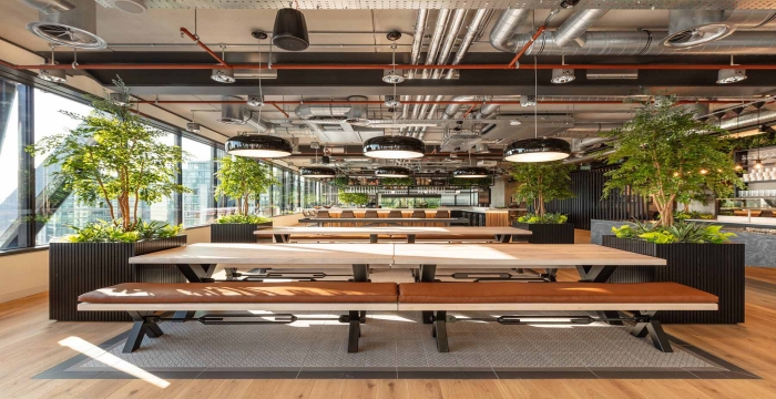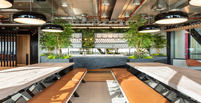 整體的設(shè)計(jì)就是將生活與工作相容,為員工提供更好的便利,一個(gè)充滿活力的辦公室空間增添了波普藝術(shù)作品中的一些自然元素作為裝飾,搭配家具的使用,柔和原始建筑的粗糙感,整個(gè)空間設(shè)計(jì)的非常有活力,正是對(duì)公司理念:“更好的工作、更好的生活”相呼應(yīng)。