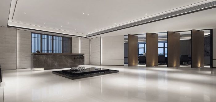 這間辦公室約1500平米。設(shè)計(jì)師用新中式的風(fēng)格打造了包含 接待、會(huì)議、品茶、私宴的辦公空間??臻g布局分為內(nèi)外兩個(gè)區(qū)域,對(duì)外區(qū)域以接待大廳為中心,延展出各功能區(qū),可滿足多種功能需求。內(nèi)部區(qū)域以辦公功能為主,開闊敞亮,自然內(nèi)斂。