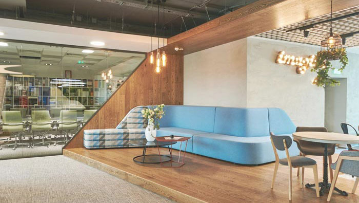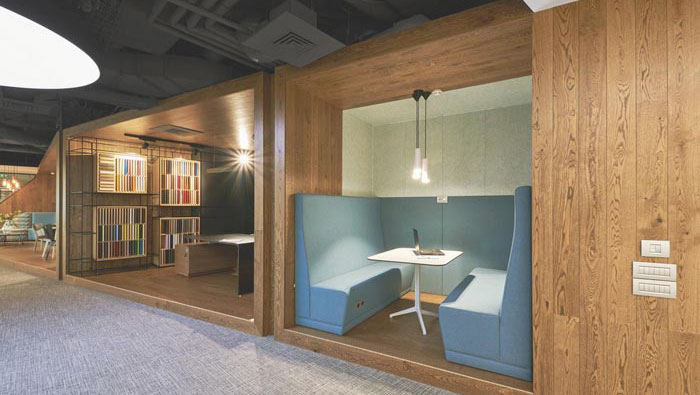 交流區(qū)域的設(shè)計(jì):設(shè)計(jì)師在設(shè)計(jì)的時(shí)候,在開放空間的基礎(chǔ)上將其隔離為一個(gè)個(gè)的小空間,設(shè)計(jì)師將其中一大部分空間設(shè)置為交流區(qū)域,在設(shè)計(jì)師看來(lái)這樣的空間相對(duì)獨(dú)立,又相對(duì)開放,設(shè)計(jì)師認(rèn)為開放又獨(dú)立的空間可以在相互之間達(dá)到互補(bǔ),對(duì)于企業(yè)的發(fā)展有積極的作用。