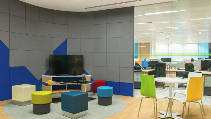 休息區(qū)域的設(shè)計:此處位于辦公區(qū)域的一側(cè),這樣設(shè)計的目的是希望給員工一個休息、娛樂的場所,同時也是為了讓員工了解到外界更多的信息,電視可以讓員工接觸到外面的世界,可以保證大家信息的暢通,同時也可以做為休閑之用,放個電影偶爾輕松一下也是一個不錯的選擇。