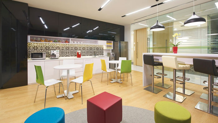 茶水間的設(shè)計:對于茶水間設(shè)計師向來是將其與休息區(qū)域相結(jié)合,在此處休息的感覺會更濃,而且此處也是一個獨立的空間,可以阻擋辦公壓力的進(jìn)入,設(shè)計師希望給員工一個無壓力的場所,哪怕只是暫時也好,這也能讓員工好好的休息一下,為接下來的工作做準(zhǔn)備,因為休息是更好的開始。