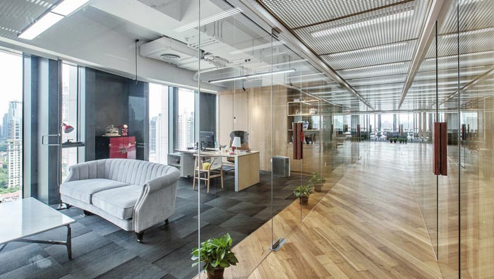 董事長(zhǎng)辦公室的設(shè)計(jì):設(shè)計(jì)師在設(shè)計(jì)的時(shí)候,與董事長(zhǎng)進(jìn)行了深入的交流,通過(guò)交流了解到董事長(zhǎng)喜歡安靜與寧?kù)o,這也就是設(shè)計(jì)師將此處安置在空間深處的原因,同時(shí)此處的視野也極好,讓董事長(zhǎng)在辦公之余可以俯視與欣賞到整個(gè)外部美景,以此在不知不覺(jué)中提升董事長(zhǎng)本人的視野。