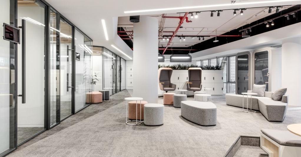 獨特的坐立辦公桌;以及伸展和力量區(qū)。設(shè)計師們最大限度地利用了自然光的流動,并通過植物和綠色植物接受了生物友好型的原則。