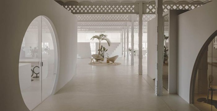 封閉的空間是以微結(jié)構(gòu)的形式構(gòu)想出來的,它相互作用,并創(chuàng)造了一條雕塑通道。圓形的開口會產(chǎn)生門窗,讓光線循環(huán)起來,喚起藝術(shù)和創(chuàng)造的世界。每個模塊都被認為是一個小雕塑,同時在構(gòu)成上與其他房間相關(guān)。