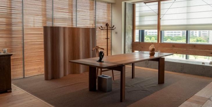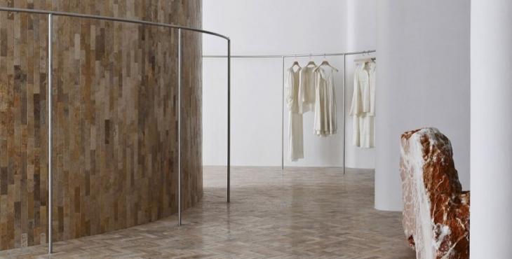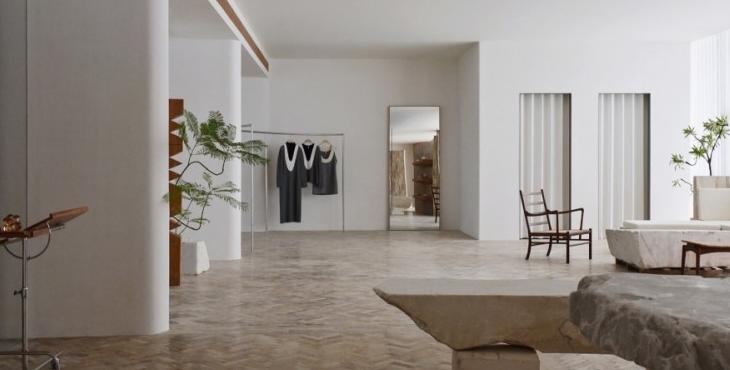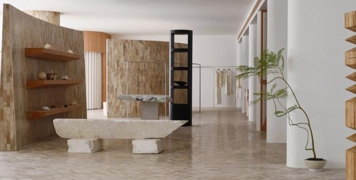 在材料上,鑲嵌在地面的來自海洋的貝類、直接從石場拉來的石方、北美松木清新的香氣,呼應(yīng)著這個(gè)塑造“自然的形狀”的服裝品牌的質(zhì)地。這些設(shè)置有利于有效率的工作和放松下來兩種狀態(tài)并存。我們希望它既能為工作提供便利性,但當(dāng)你放松下來,這個(gè)辦公室又是一個(gè)令人感到舒服的地方。