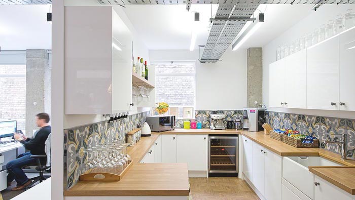 辦公區(qū)域、茶水間的設(shè)計(jì):設(shè)計(jì)師在設(shè)計(jì)的時(shí)候,將兩個(gè)區(qū)域安置成相鄰的模式,這樣一來可以加快辦公的效率,因?yàn)椴杷g屬于空間的中心區(qū)域,在此處不管對(duì)于那個(gè)空間來說都是便捷的,設(shè)計(jì)師在設(shè)計(jì)中重點(diǎn)滿足的就是空間的容納能力,這樣可以讓琳瑯滿目的日常用品各歸其類。