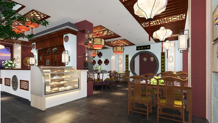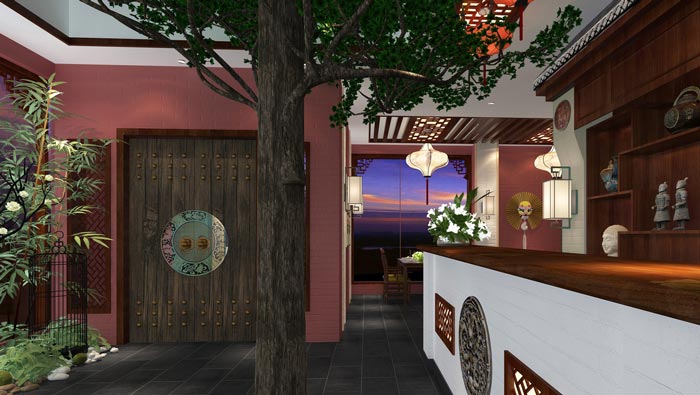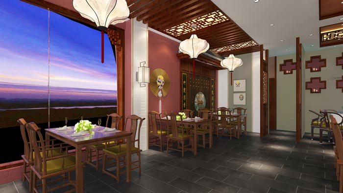 川菜館進門區(qū)裝修設計:客戶進入餐館后,空間給客戶的第一感覺就是鳥語花香,這意境、這景色、這氛圍,給客戶一個不錯的第一感覺,讓客戶喜歡這里,是設計的第一考慮。