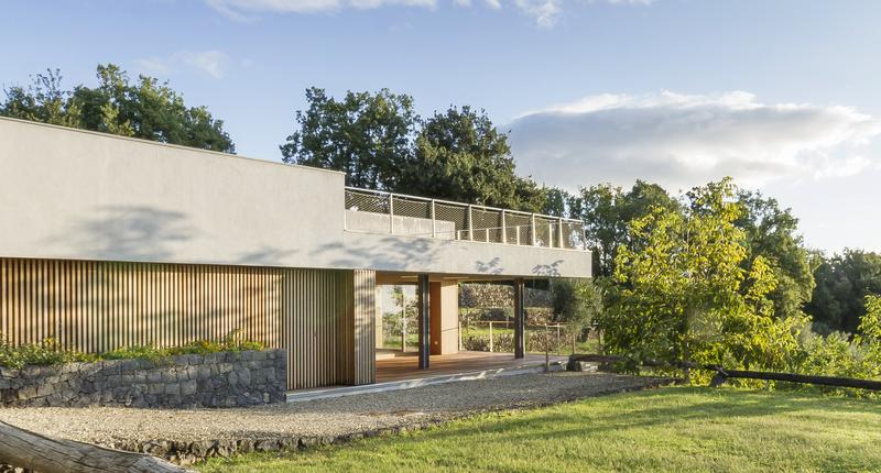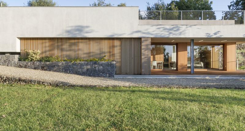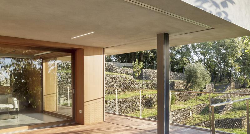 這個只有一層樓高的居住空間,有著通向自然的大窗戶,在柑橘林之間。最初的設(shè)計干預(yù)應(yīng)該只包括對位于廣大農(nóng)業(yè)地產(chǎn)中心的主住宅周圍的外部區(qū)域進行改造。除此之外,在幾十米之外,還有一個游泳池要完工,停在一個部分地下的工具棚上。有人建議加強這一看似次要的區(qū)域,并將其改造成一座外建筑,成為一個居住和招待的空間。一個親密的避難所和一個風(fēng)景觀測站。建筑與自然的融合是該項目的基礎(chǔ),很少有元素具有必要的設(shè)計功能,可以定義一個與周圍景觀保持強烈的視覺和物質(zhì)連續(xù)性的室內(nèi)空間。