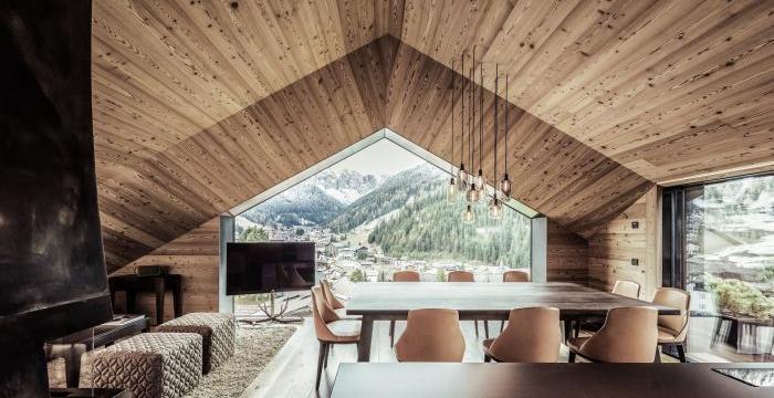 一間木質自然別墅裝修設計,空間面積600平方米。它位于一個獨特的景觀的中心,提供了一個特殊的景觀的鞍地塊。整棟建筑都是現(xiàn)代主義建筑,線條清澈,但同時也承載著。建筑傳統(tǒng)的呼應像使用當?shù)氐牟牧?,如石頭和木材。