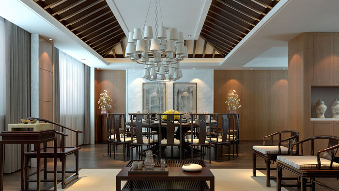 燈具及五金設(shè)計(jì),也都有明代審美的影響,而明清文人畫(huà)亦通過(guò)印刷在亞麻布面上整幅出現(xiàn)。