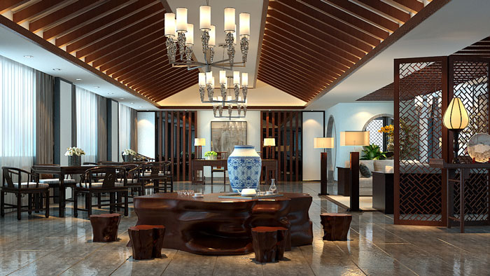 設(shè)計(jì)師考慮到建筑空間的原有風(fēng)格及投資方需求,設(shè)計(jì)師決定采用新中式手法來(lái)打造會(huì)所,而非過(guò)往高檔場(chǎng)所常見(jiàn)的歐式調(diào)性。