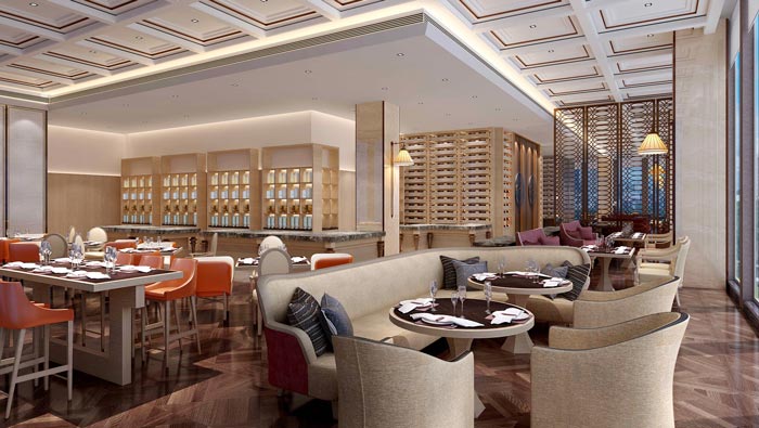 餐廳的設(shè)計:足不出戶是酒店給人的第一感受,在這里就是希望形成一個良好的內(nèi)部循環(huán),讓客戶在內(nèi)部體驗到所有需要的服務(wù),在這里設(shè)計師以家對餐廳進行定義,在設(shè)計師看來現(xiàn)在社會最缺的就是一種氛圍,一種家的氛圍,設(shè)計師希望客戶在這里可以體會到家的感覺。