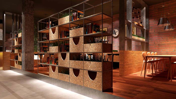 設(shè)計(jì)師在咖啡廳設(shè)計(jì)的時(shí)候,保持主色調(diào)、主體裝飾材料的運(yùn)用、鋪陳出工業(yè)風(fēng)。