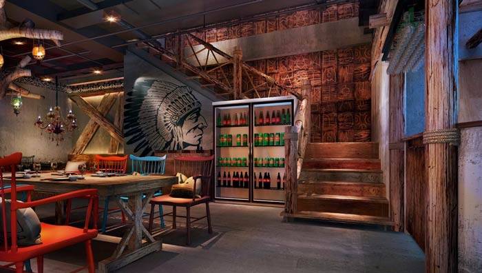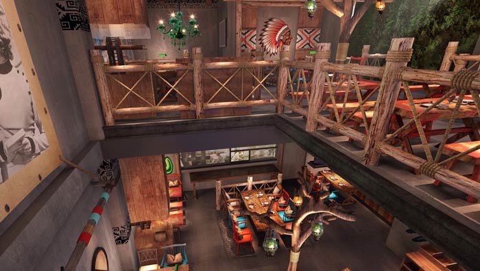 燒烤店二樓餐區(qū)設(shè)計(jì):這里給人的第一感覺(jué)就是井然有序,第二感覺(jué)就是原始生態(tài),這里主打的就是餐廳的環(huán)境,這里不僅讓客戶吃的安心,同時(shí)也讓客戶享受到舒適的環(huán)境。