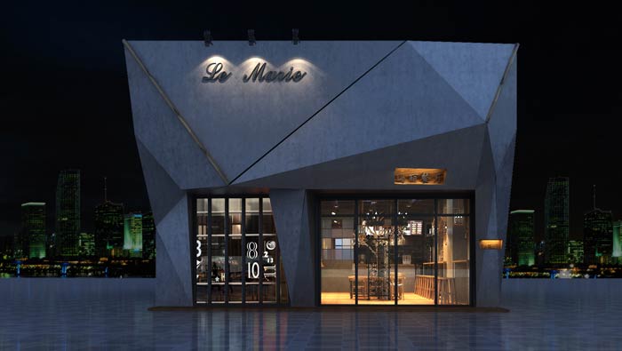 特色快餐店外立面裝修設(shè)計(jì):異形的快餐廳外立面+銀灰色的色彩設(shè)計(jì),讓快餐廳符合商業(yè)廣場(chǎng)內(nèi)的氣質(zhì),這樣的設(shè)計(jì)讓客戶愿意進(jìn)入,設(shè)計(jì)師要做的就是將設(shè)計(jì)與周圍融為一體。