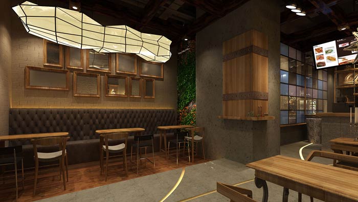 特色快餐店餐區(qū)裝修設(shè)計(jì):餐區(qū)氛圍吧臺(tái)區(qū)【單人區(qū)】、雙人區(qū)、四人區(qū)三種模式,這是根據(jù)商業(yè)廣場(chǎng)客戶的屬性所決定的,這樣可以最大化的實(shí)現(xiàn)分流,以此增加餐廳的待客。