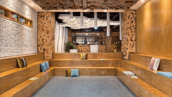 教育培訓(xùn)閱讀區(qū)設(shè)計:在此處設(shè)計的時候,設(shè)計師的想法就是希望閱讀可以和玩耍結(jié)合在一起,設(shè)計師以四方格做為基本框架,以階梯狀打造閱讀區(qū),中間自然凹陷是孩子玩耍的區(qū)域,勞逸結(jié)合正是此處的最佳說明。