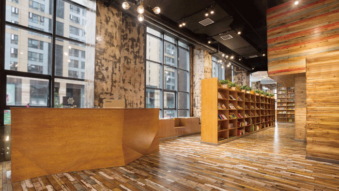 教育培訓(xùn)前臺接待設(shè)計:此處位于書架與書架之間的間隙區(qū)域,這樣設(shè)計一方面可以將空間開發(fā)到極致,另一方面也是為孩子提供一個閱讀的場所,同時此處也兼職接待,讓功能多樣化是設(shè)計師設(shè)計的前提。