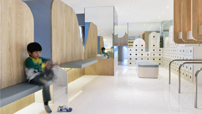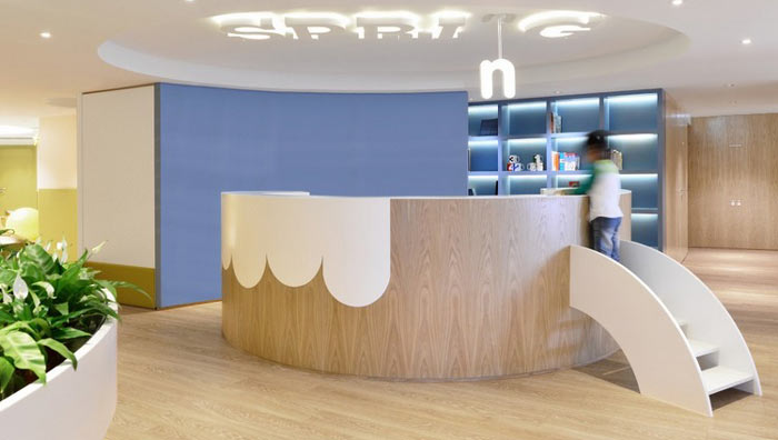 本次為兒童教育培訓(xùn)機構(gòu)裝修設(shè)計案例,設(shè)計師沒有采用童話式的設(shè)計元素,取而代之的是中性的設(shè)計,白色、淺綠、淺藍(lán)的色彩運用、和木材將兒童和家長的視角相結(jié)合,并在空間、軟裝的設(shè)計細(xì)節(jié)中表現(xiàn)出來,以此完成兒童、家長和教育工作者之間的對話和互動。