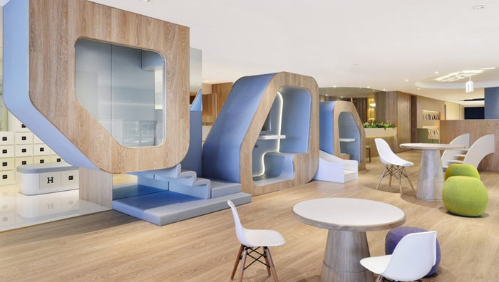 兒童教育培訓(xùn)機構(gòu)接待區(qū)設(shè)計:說是接待區(qū)其實也兼顧洽談與休閑,在設(shè)計中設(shè)計師在同一個空間內(nèi),設(shè)計并放置了兩套家具系統(tǒng),目的就是滿足兒童和成人各自的需求。