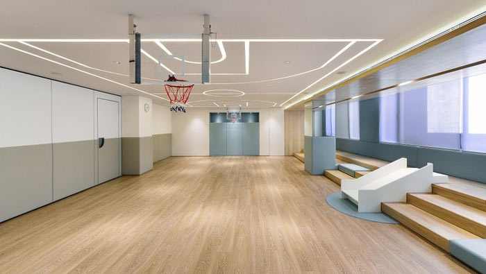兒童教育培訓(xùn)機構(gòu)籃球場設(shè)計:孩子太小沒法學(xué)習(xí)籃球,沒關(guān)系在這里教育的不是成功投籃,而是培養(yǎng)孩子的興趣,在與隊員相互配合的同時,培養(yǎng)孩子們的團隊意識。