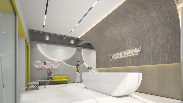 本次藝術(shù)學(xué)校裝修設(shè)計效果圖講解到此結(jié)束,此處藝術(shù)學(xué)校設(shè)計中,告別了五彩斑斕的顏色,突出了空間的簡潔與干凈,用黃色做為點綴色提升空間的趣味性。