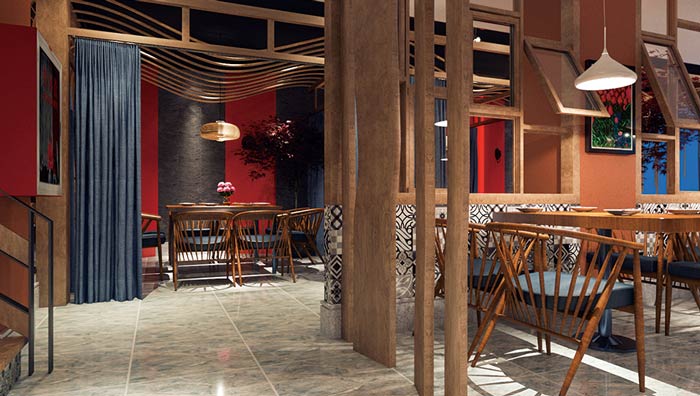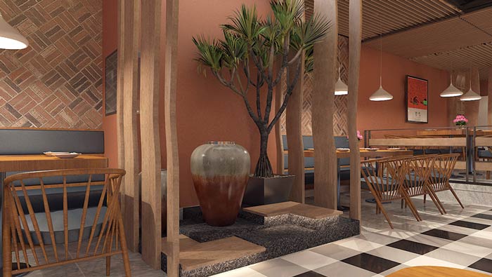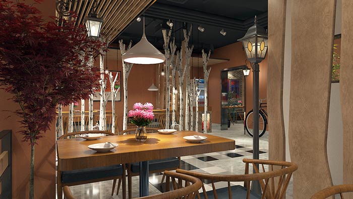 私房菜餐廳局部餐區(qū)設(shè)計:中國古代對于木的運用,可以說是登峰造極,餐桌椅代表的不僅是一種產(chǎn)品,更是一種文化的積淀,這里享受的不僅是美食,同時享受的也是一種文化。