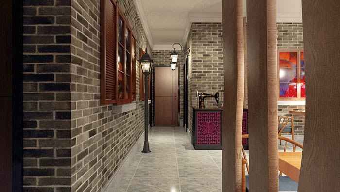 私房菜餐廳餐區(qū)設(shè)計:老式的磚墻空間,會有一種親切的感覺油然而生,在這樣的空間中吃飯,會讓很多客戶想起媽媽的手藝,在這里美味、回憶、回憶中的味道,在這里交織。