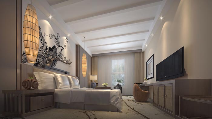 標(biāo)間的設(shè)計(jì):客戶推門(mén)進(jìn)入房間之后,給人的第一感覺(jué)就是舒適,這也是設(shè)計(jì)師希望看到的,設(shè)計(jì)師希望將舒適打造成酒店的代名詞,因?yàn)閷?duì)于商務(wù)人士來(lái)說(shuō),舒適是他們夢(mèng)寐以求的,在這里沒(méi)有快速的生活、沒(méi)有嘈雜的工作壓力,有的只是輕松、舒適,有的只是慢生活下的我們輕松、舒適的生活。