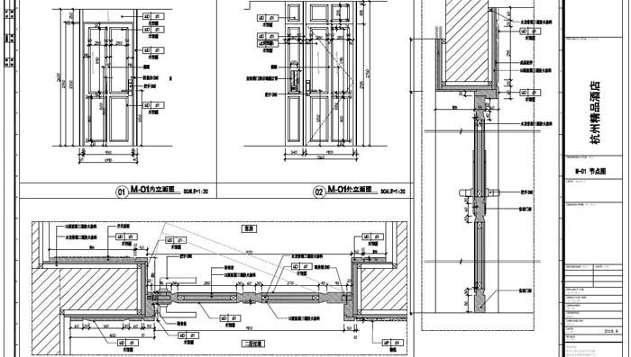 杭州精品酒店室內(nèi)裝飾工程深化設(shè)計(jì)施工圖01號(hào)門(mén)內(nèi)、外立面刨面圖01-04