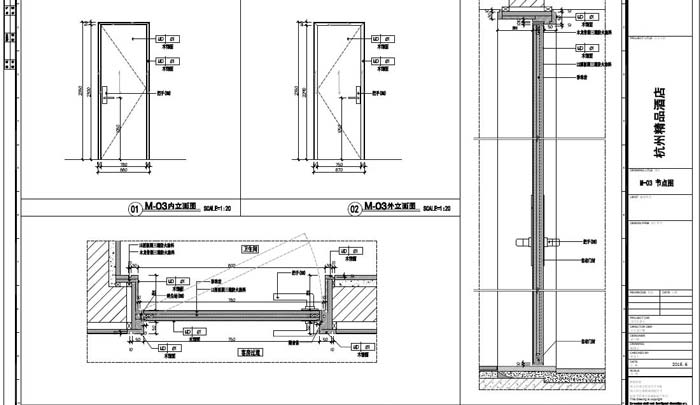 杭州精品酒店室內(nèi)裝飾工程深化設(shè)計(jì)施工圖02號(hào)門(mén)內(nèi)、外立面刨面圖01-03