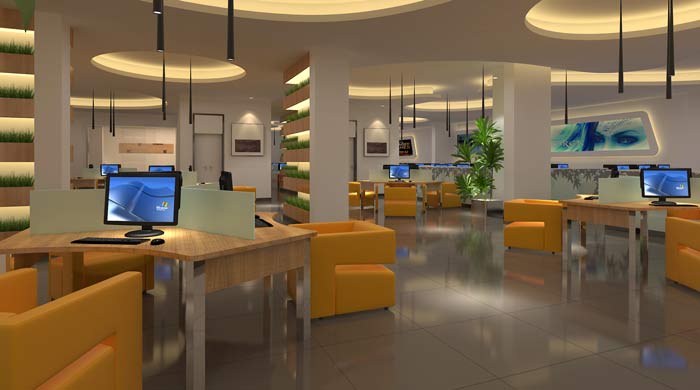 網(wǎng)咖設(shè)計的隔斷很少,只是用少量原始柱體來做裝飾,增加整個網(wǎng)咖的通透性,放大網(wǎng)咖的面積,是整體具有的大氣,恢弘的效果。