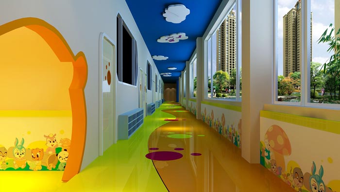 走廊的設(shè)計(jì):當(dāng)從前臺(tái)進(jìn)入室內(nèi)空間之后,一條主動(dòng)線將其引入室內(nèi),此處設(shè)計(jì)師采用了色彩、動(dòng)畫(huà)等各種各樣的設(shè)計(jì)模式,目的就是讓孩子喜歡這里,同時(shí)設(shè)計(jì)師對(duì)于空間的采光要求也十分高,設(shè)計(jì)師希望讓孩子在快樂(lè)的同時(shí),并時(shí)刻接觸自然,保證孩子快樂(lè)、健康的成長(zhǎng)。