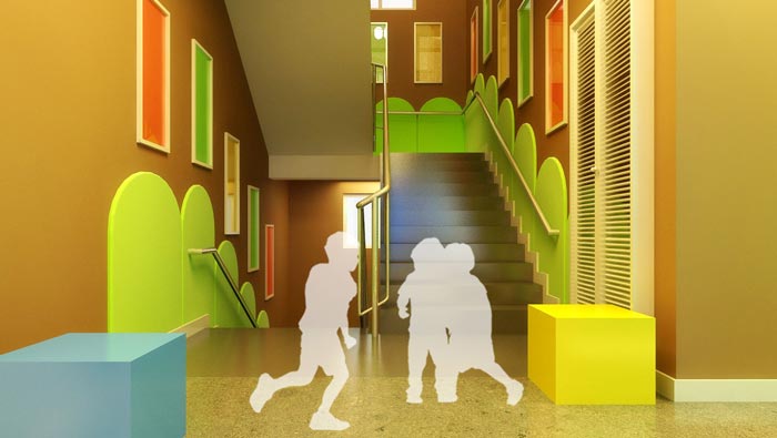 動線的設(shè)計(jì):在設(shè)計(jì)師看來對于孩子來說,最喜歡的莫過于相互玩耍、相互嬉戲,故此設(shè)計(jì)師特意預(yù)留了足夠的活動空間,讓動線承載了這一特殊的屬性,設(shè)計(jì)師的想法就是讓動線既可以保證空間的暢通,同時(shí)也可以滿足孩子們在這里玩耍,設(shè)計(jì)師希望讓孩子們在學(xué)習(xí)的過程中可以玩的開心。