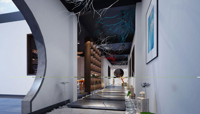 設(shè)計理念:設(shè)計師在國學(xué)館之初,經(jīng)過和業(yè)主之間的交流,了解到業(yè)主希望可以在空間內(nèi)融入禪的定義,希望空間內(nèi)部可以處處透漏禪機(jī)。