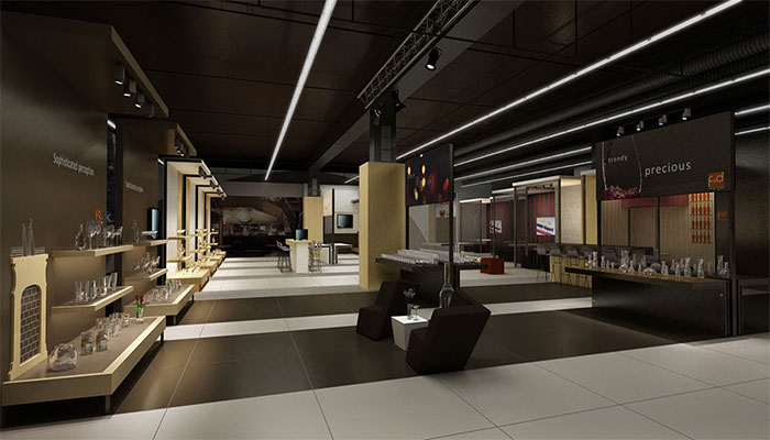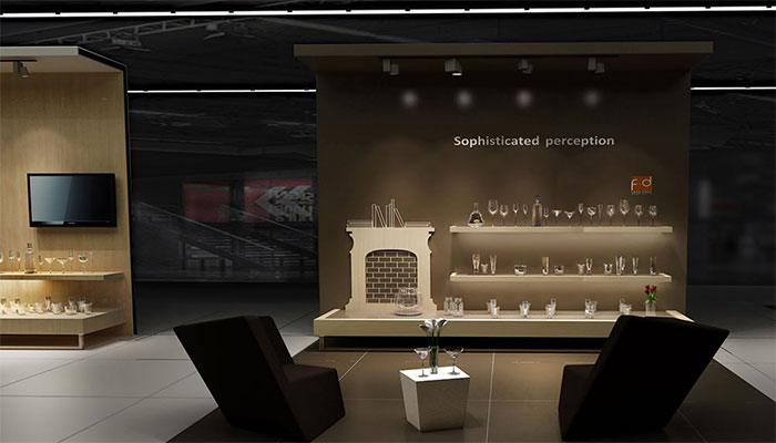 設計理念:本展廳主要是透漏出玻璃器皿的個性,大家都知道玻璃器皿就是用玻璃所造的器皿。 玻璃藝術在我國保持了連綿不斷幾千年的發(fā)展歷史。明代萬歷年間,山東博山的料器制作已十分繁榮興盛,明末清初傳入北京,在清初康熙、雍正、乾隆時期,琉璃生產一度得到復興,清康熙三十五年,北京出現大規(guī)模的“琉璃廠”,生產皇宮享用的料器。在這期間,玻璃器皿的品種豐富多彩,造型與裝飾也有所變化。其中料仿玉、翡翠、瑪瑙、珊瑚等制成的瓶、碗、鼻煙壺、鳥獸等,顏色逼真,具有獨特風格和韻味。展廳中擺放著各式各樣的不同的玻璃器皿。讓我們感覺像是穿越時空一樣見到各個時期、各個朝代的不同類型的玻璃器皿。讓人不自覺的陶醉。感覺小小的玻璃杯中蘊含的是中華幾千年的歷史和中華幾千年來的見證。若是兩個戀人擁著此器皿,一定會為器皿之中所蘊含的中華文化所陶醉,正如杯以傾美酒,中山如有酒。酒后競風彩,美人雙翠幰。人稱入室賢,心跡竟難陳。