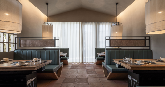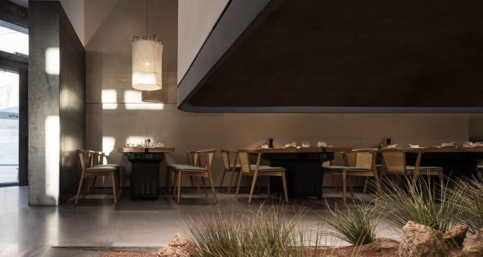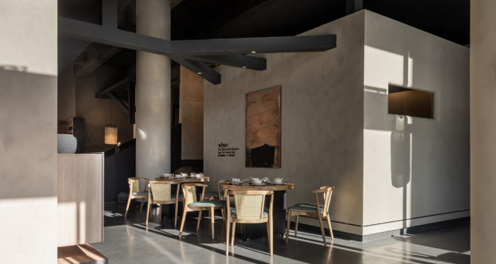 這是“侘寂煙火-如熹RUXI”餐廳的設(shè)計(jì)理念和品牌故事。餐廳以打邊爐為核心,強(qiáng)調(diào)“侘寂”美學(xué)的孤寂與市井煙火的對(duì)比。設(shè)計(jì)師通過將空間化零為整、打通室內(nèi)邊界,營造出人與自然之間的深層關(guān)系。空間設(shè)計(jì)以“侘寂煙火”為主題,運(yùn)用開放界面和透明封閉界面,將自然光引入作為主要照明方式,創(chuàng)造出豐富的光影韻律。設(shè)計(jì)希望通過空間的沉浸感讓食客放松下來,享受當(dāng)下。整體空間設(shè)計(jì)質(zhì)樸自然,融入了水墨元素,增加了調(diào)性和趣味性。通過在“侘寂”中感受人間煙火氣,設(shè)計(jì)希望重新尋找通往松弛和諧的理想生活。