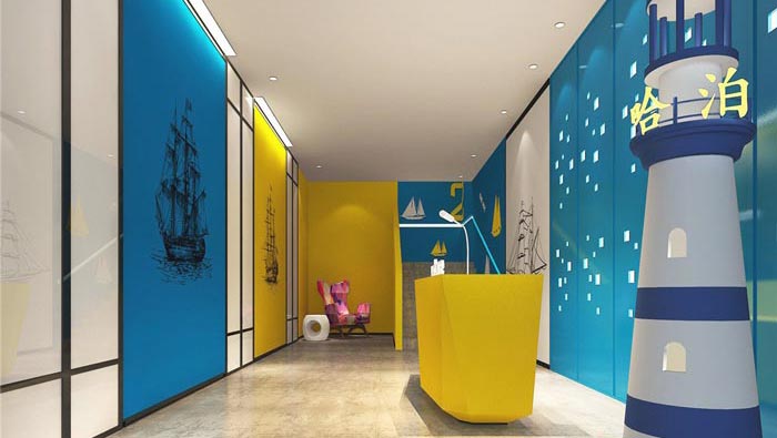 本次為港灣主題酒店裝修設(shè)計項目,設(shè)計面積在1500平方,設(shè)計師在與客戶的交流中,了解到客戶希望給大家營造一個避風、避浪、安全停泊的場所,這是客戶游歷海洋之后突發(fā)的靈感,因為對于很多人來說,海洋是一個未知的區(qū)域,讓人充滿了好奇、神秘,客戶就是希望將其搬上陸地,讓更多的人可以感受到。