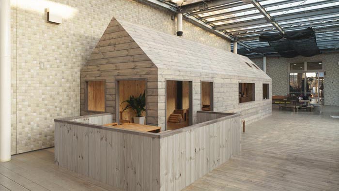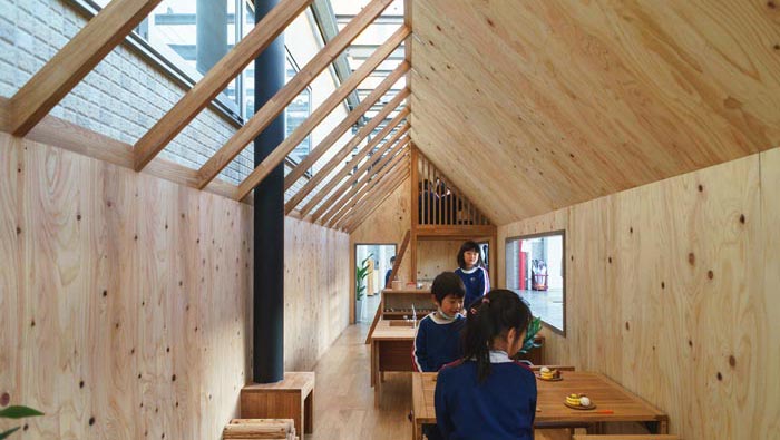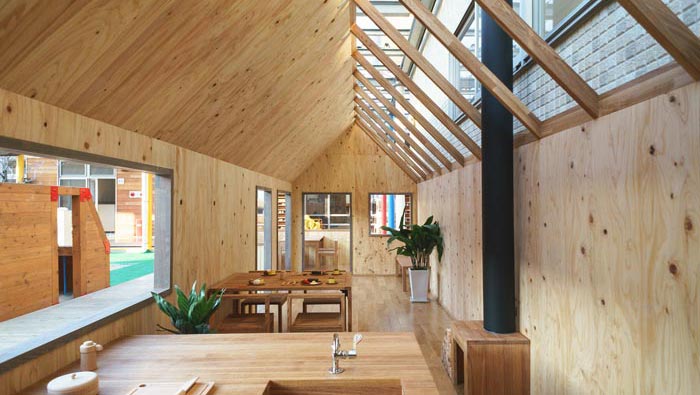 內(nèi)部空間的設計:從內(nèi)向外看可以看出整個空間條理十分清晰,目的就是不希望阻礙孩子的創(chuàng)造力和好奇心,在這里教會孩子不斷理清事物,有鮮花裝飾的桌子,用餐時讓孩子自己安排自己的菜肴,在飯后小孩子自己去洗碗,目的就是為了鍛煉他們動手的能力,讓孩子們在不斷學習中成長起來。
